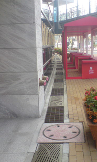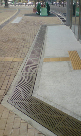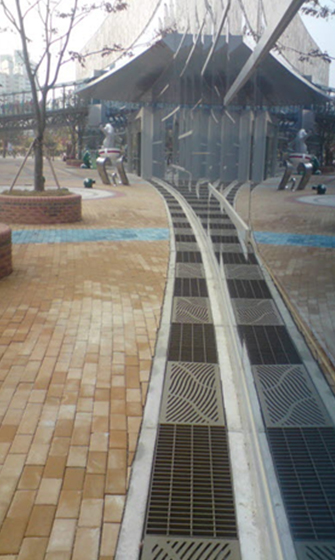 기본 골격은 그레이팅으로 되어 있어 하중에도 견딜 수 있도록 설계되어 있습니다. 수년간 고정된 그레이팅 모양에서 탈피한 새로운 개념의 진보적인 그레이팅 입니다. 다양한 색상의 선택으로 주변경관과의 조화로움을 추구할 수 있습니다.부천 만화 박물관 현장
