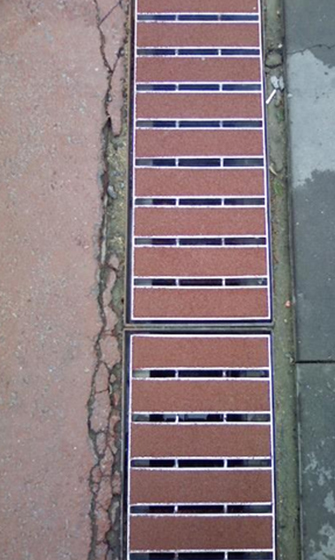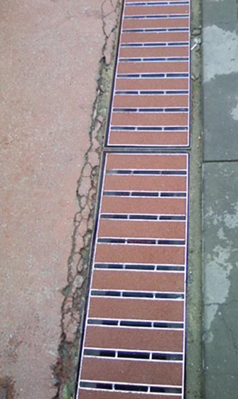 건물이나 집 등의 연결된 도로의 배수로 덮개로 사용되어지며, 마찰면이 넓어 압력을 고루 분배하여 보행 시 발에 닿는 느낌이 좋다. 다양한 색상 의 선택으로 시각적으로도 산뜻함을주어 안정적인 보행을 할 수 있다.